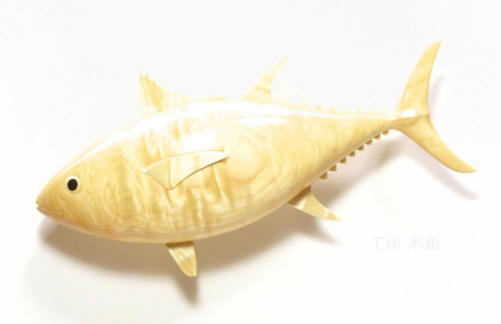 材料の伐採から作品の仕上げまで、全てが一人の作家によるこだわりの魚の木彫。